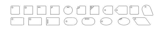 薄膜開關(guān)按鍵的各種形狀:鍵體外形與大小的設(shè)計,應(yīng)從整個面板的大小及按鍵數(shù)量的多少來考慮。按鍵太小,操作比較費力;按鍵太大,則影響美觀,且不宜按準有效操作區(qū)域。另外,如果按鍵凸起,應(yīng)選擇帶圓角的矩形、圓形、橢圓、長圓等外形比較圓滑的形狀;按鍵不凸起時,則可選擇任意形狀,以略大于后部電路觸點為好。在鍵體上設(shè)置指示窗,一般情況下,以左上角為好。指示窗的形狀雖可自由設(shè)計,但應(yīng)注意盡量與鍵體的外形輪廓相適應(yīng),譬如,帶圓角的鍵體,宜采用圓形指示窗,方角鍵體宜采用方形或長方形指示窗,以增進外觀的協(xié)調(diào)。在同一面板上各單元內(nèi)的指示窗位置及形狀應(yīng)趨于一致。常見鍵體外形與指示窗位置、形狀見下圖